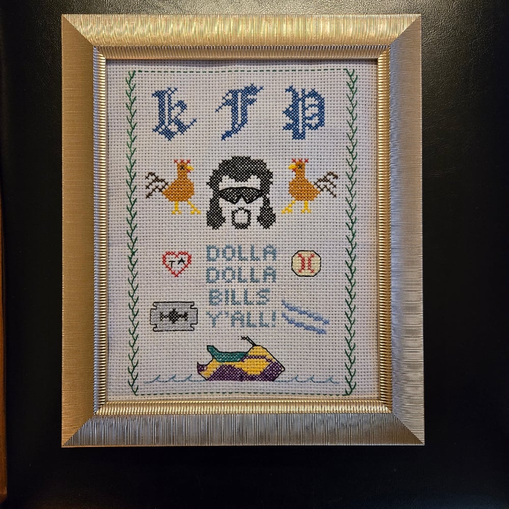 Original design and stitching by Kari of Sew Inappropriate. 8" x 10" arrives framed.